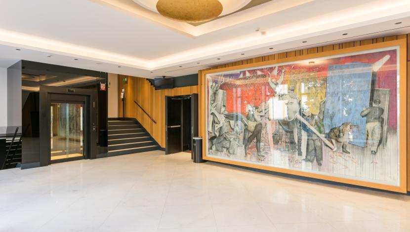En este entorno, Orona ha incorporado un ascensor panorámico que se integra de forma armoniosa en el vestíbulo principal. La solución, con acabados en negro y vidrio, respeta la estética del edificio y aporta una presencia discreta y sofisticada. Su funcionamiento fluido facilita el tránsito del público y del personal, reforzando la accesibilidad sin alterar el carácter emblemático del teatro.
