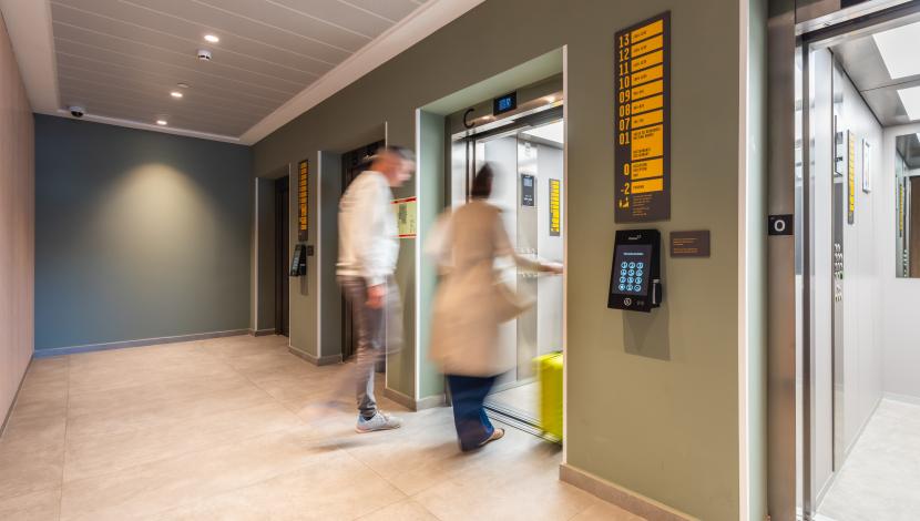 En su interior, distintos espacios; hoteles, zonas comunes y áreas residenciales que se conectan mediante varios ascensores Orona, adaptados a cada necesidad. Cabinas luminosas, accesos claros y acabados en acero inoxidable aseguran una experiencia cómoda y fluida tanto para residentes como para huéspedes.