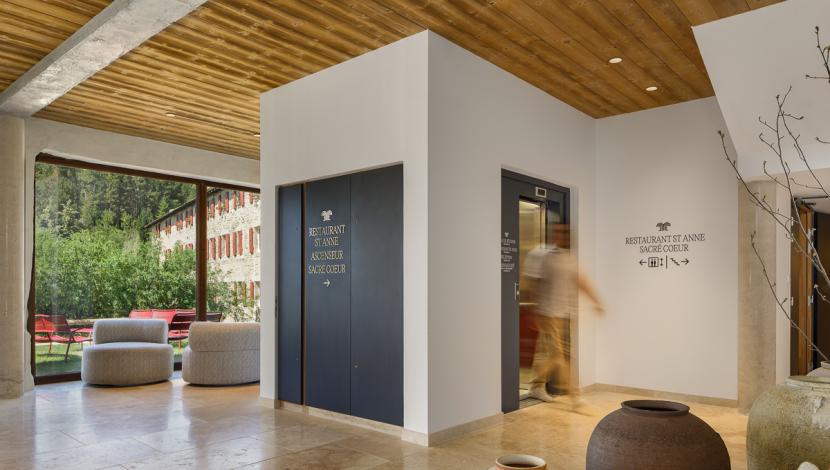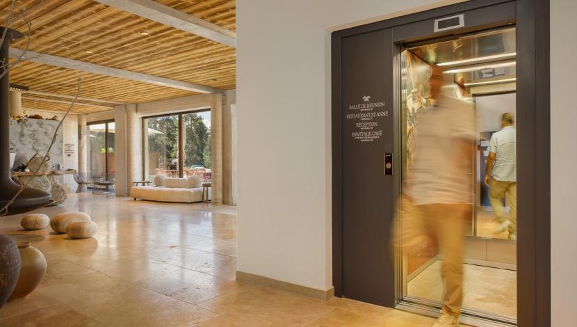 Dans ce contexte, Orona apporte des solutions de mobilité verticale qui s’intègrent discrètement à l’architecture de l’hôtel. Les ascenseurs, dotés de finitions sobres et d’un éclairage confortable, garantissent un déplacement doux et sécurisé, accompagnant l’atmosphère paisible et soignée de l’établissement.