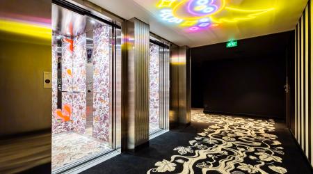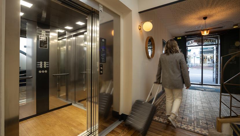 Pour faciliter la mobilité entre les différents étages, l’hôtel intègre un ascenseur Orona discrètement incorporé au design de l’espace. La cabine, dotée de finitions élégantes et d’un éclairage confortable, assure un déplacement doux et sécurisé pour les clients, renforçant ainsi la qualité et le confort de l’établissement.