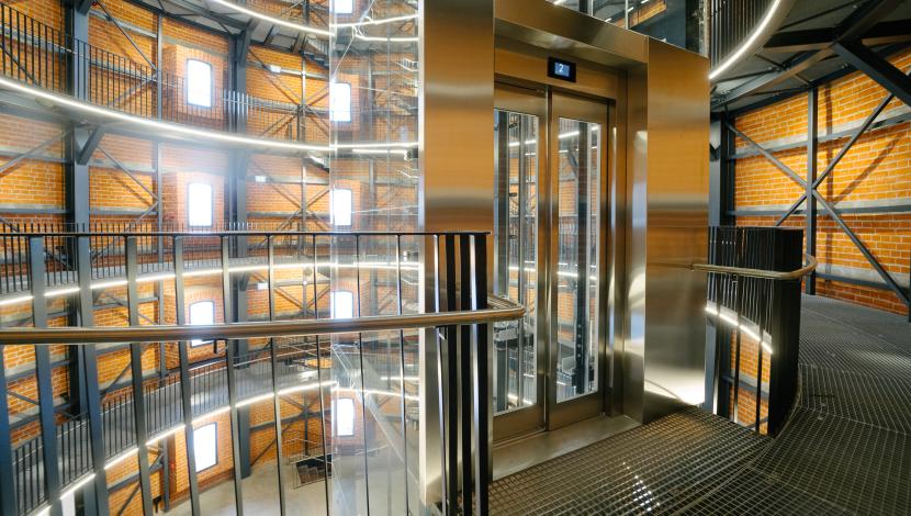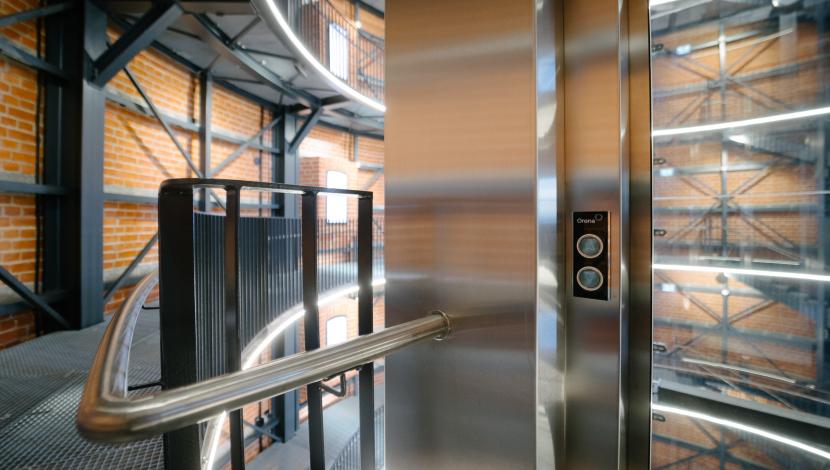 To address this challenge, an Orona Smart Plus lift with a 700 kg capacity and 7 stops was installed, featuring glass walls and doors that ensure a light visual integration respectful of the historic environment.