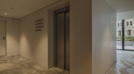 Os elevadores Orona integram-se de forma impecável neste ambiente atual, apostando em cabinas espaçosas, linhas limpas e soluções acessíveis que facilitam a mobilidade dentro do edifício. A transparência do elevador panorâmico, presente num dos pisos, acrescenta um toque de design e uma ligação visual ao exterior, reforçando a sensação de abertura e modernidade do conjunto.